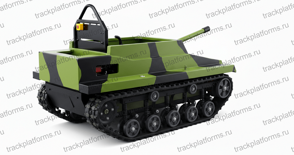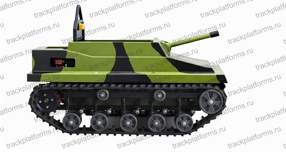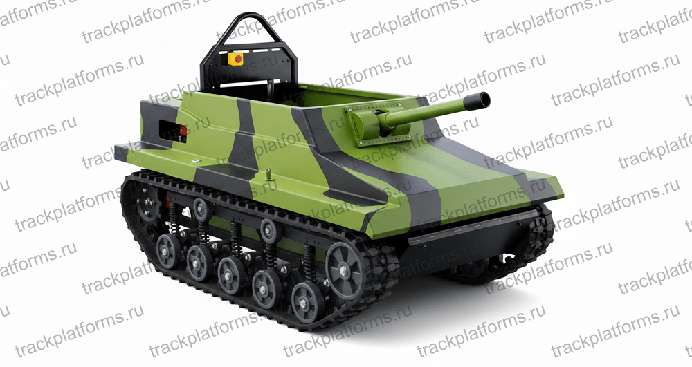 Гусеничная база обеспечивает уверенное движение по грязи, песку, снегу, траве и пересечённой местности. Мини-танк не застревает там, где обычная техника уже не проходит.